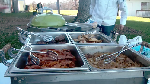 Bacon, grilled onions, burgers and chicken ready to be served at our November 2015 RAS fall picnic.
